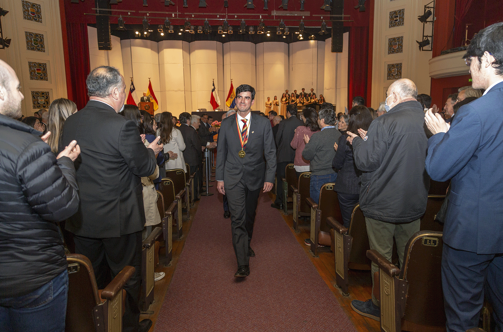 Para culminar el primer discurso de su mandato, el Rector Juan Yuz agradeció las buenas palabras recibidas destacando que “como la cara visible de una nueva administración, (valoro) las múltiples muestras de apoyo recibido de parte de colegas, funcionarios y funcionarias, exalumnos y estudiantes. En lo más personal agradezco a mi familia, pues sin todo lo que me han regalado a lo largo de mi vida, yo no estaría aquí”, cerró ante el aplauso del teatro.