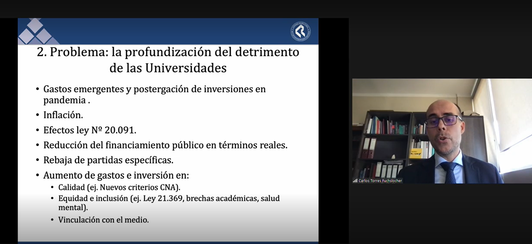 Torres también destacó las complicaciones financieras que han debido enfrentar los planteles debido a la aplicación de los artículos 108, y 35 y 38 transitorios de la Ley N° 21.091, vinculados al beneficio de la gratuidad.